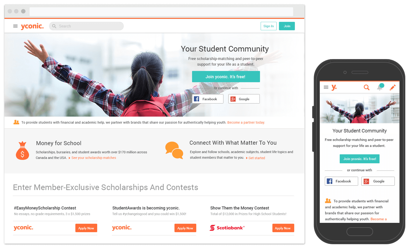 Mobile app Research UX Designyconic is a platform for high school and post secondary students interested in scholarship and bursary matching.